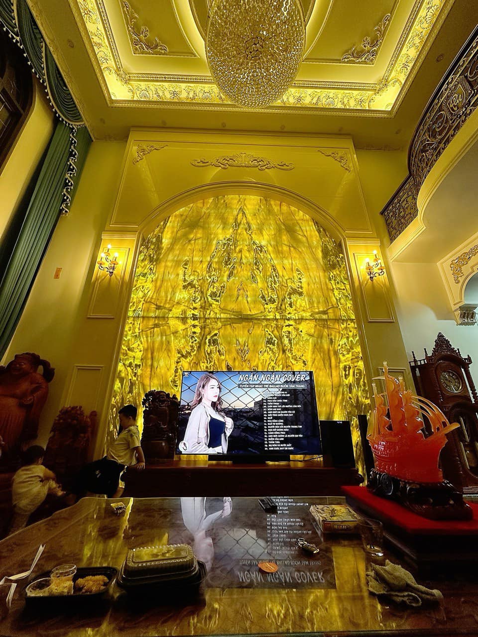 Một bức tranh đá tại trung tâm phòng khách giúp không gian thêm sang trọng.