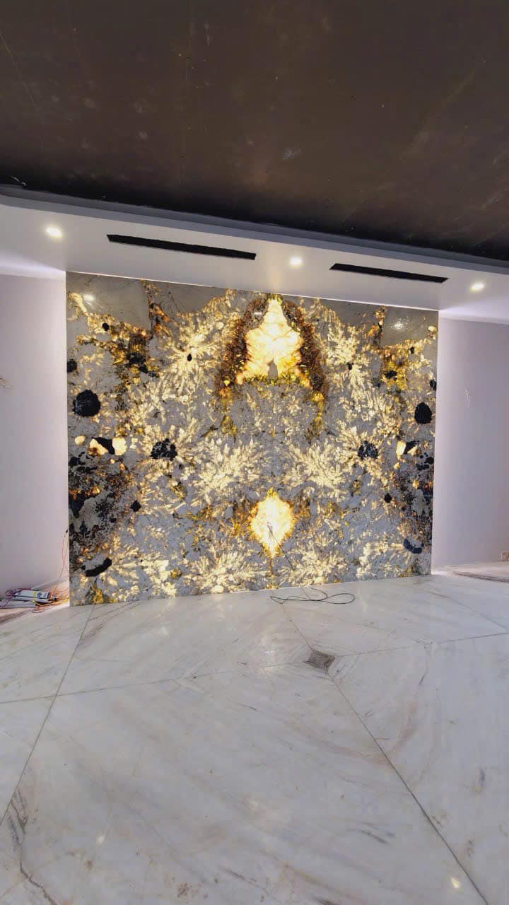 Sự kết hợp của ánh sáng và vân đá mềm mại tạo hiệu ứng huyền ảo, lý tưởng cho không gian hiện đại.